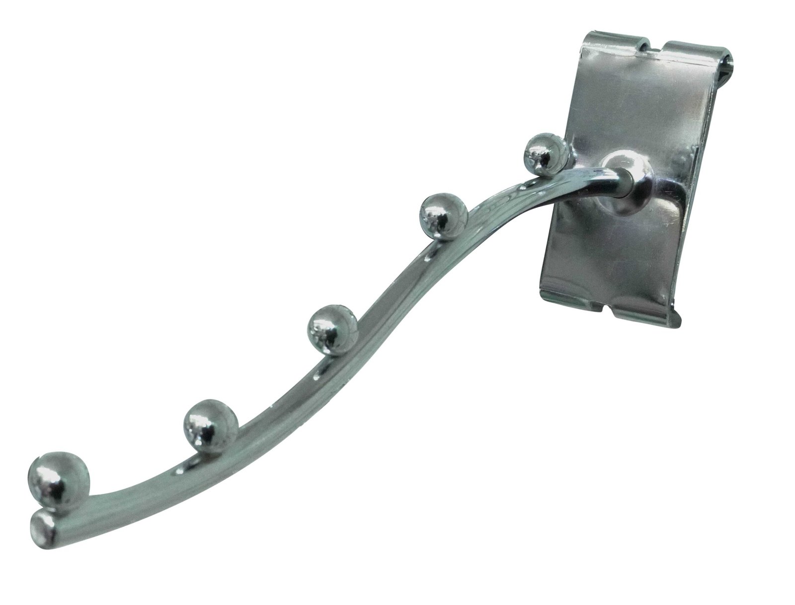 + Free ShippingThe 5 Ball SS Grid Panel Hanger is a stainless steel display accessory used in retail. It attaches to grid panels and features five balls to keep items secure and organized. Ideal for hanging clothes and accessories.