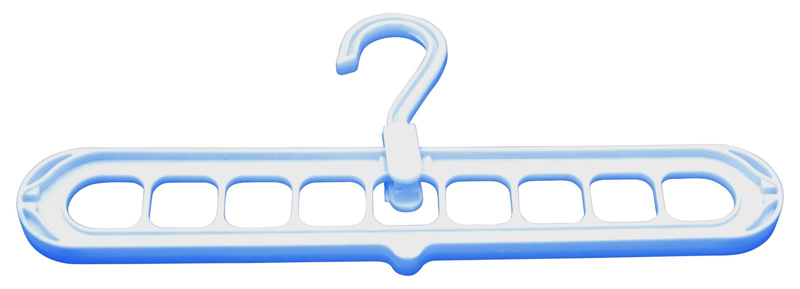 A hanger is a versatile accessory designed to hold and organize clothing or other items. Typically made from materials like plastic, metal, or wood, hangers feature a hook at the top for hanging on rods or racks, and a frame to support garments. They are essential for maintaining the shape and condition of clothes, making them a staple in closets, retail stores, and laundry facilities.