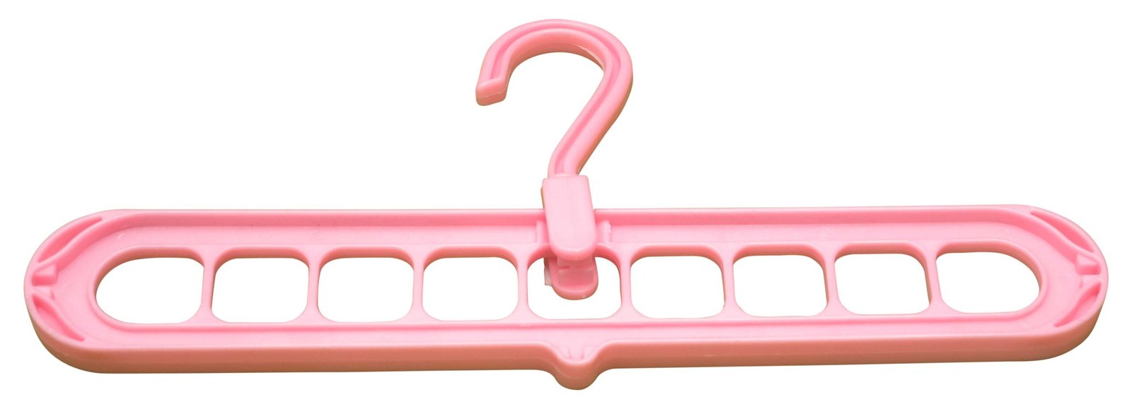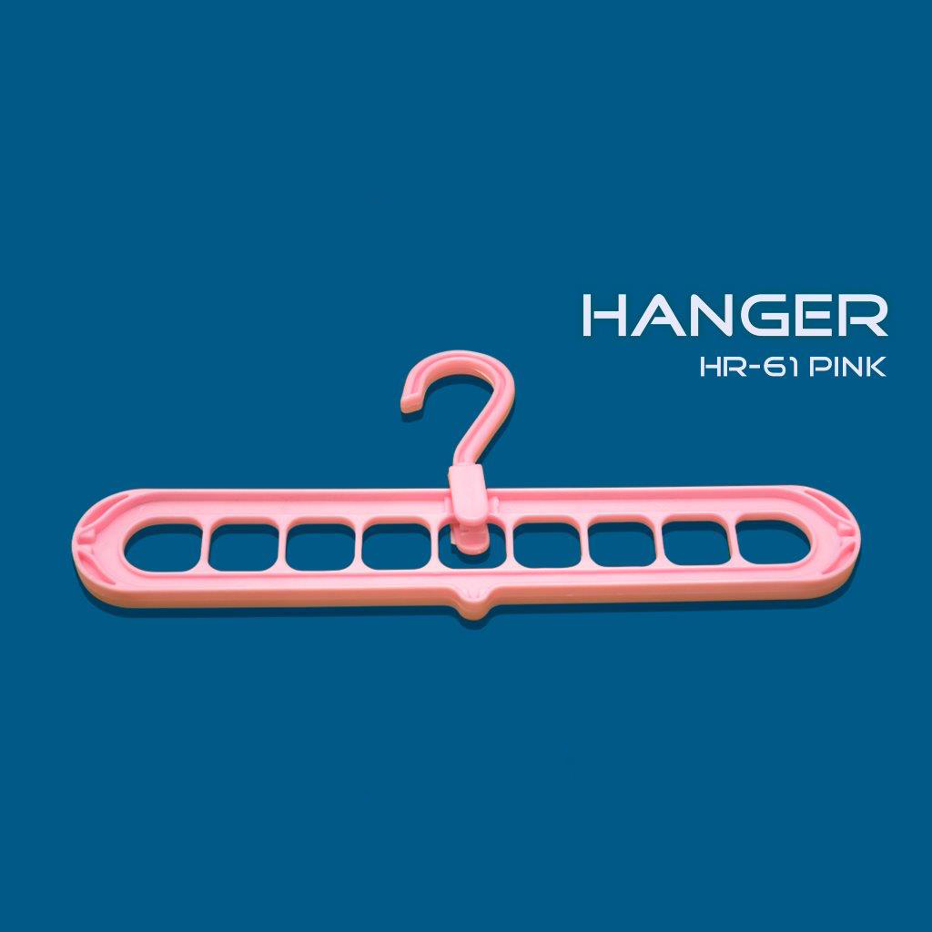A hanger is a versatile accessory designed to hold and organize clothing or other items. Typically made from materials like plastic, metal, or wood, hangers feature a hook at the top for hanging on rods or racks, and a frame to support garments. They are essential for maintaining the shape and condition of clothes, making them a staple in closets, retail stores, and laundry facilities.